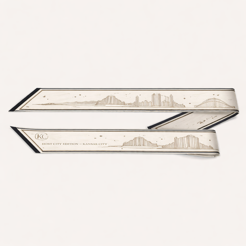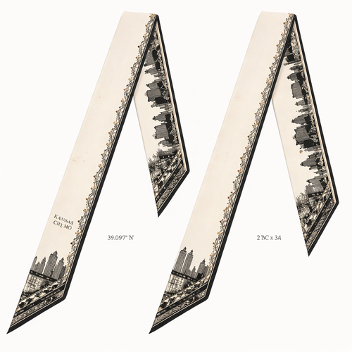 design a silk scarf that is 5x 86 cm Luxury silk scarf design inspired by Kansas City as a host city, refined and time...