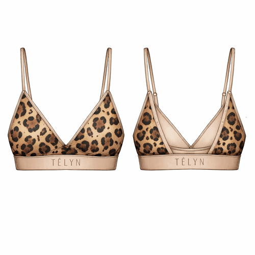 Ik want a fashion sketch of a front and back with a brallete in cheetah print. Like in the skims style but still make it...