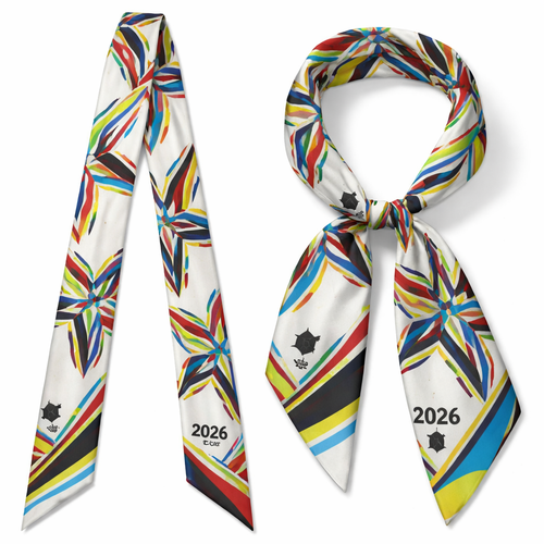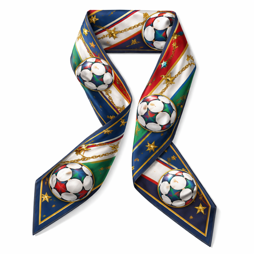 Design a silk scarf 5x86cm that has inspiration from to 2026 World Cup soccer ball