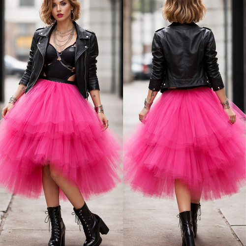 Create a sexy, modern yet super feminine ballet inspired look, with a vintage soft black leather jacket over a black sil...