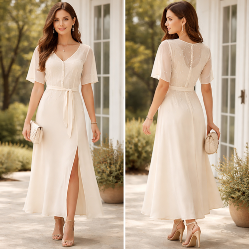 الستايل: ناعم – أنثوي – هادئ • القطع الأساسية: • فستان/طقم بسيط بلون فاتح (أبيض/عاجي/بيج) • قصّة مستقيمة أو خفيفة على...