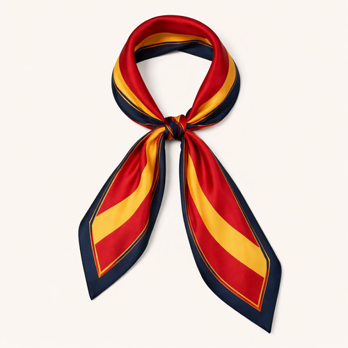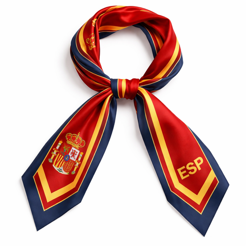 Design a silk scarf 5x86cm with the colors of Spain’s soccer team with angled corners