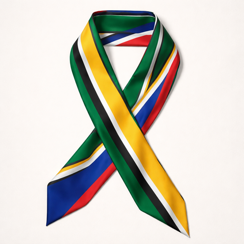 Design a silk scarf 5x86cm with the colors of South Africa soccer team with angled corners without the words or logos