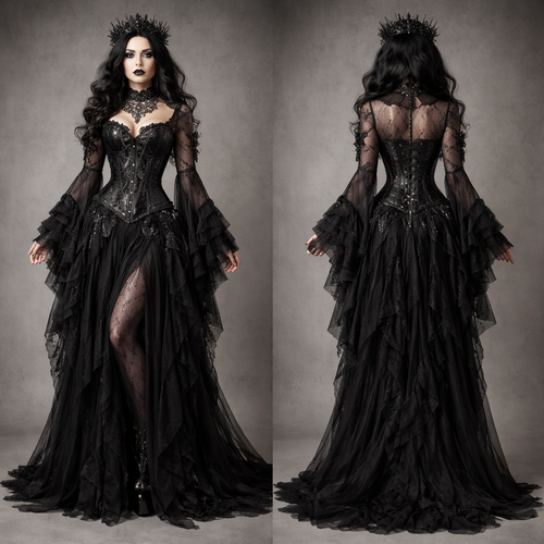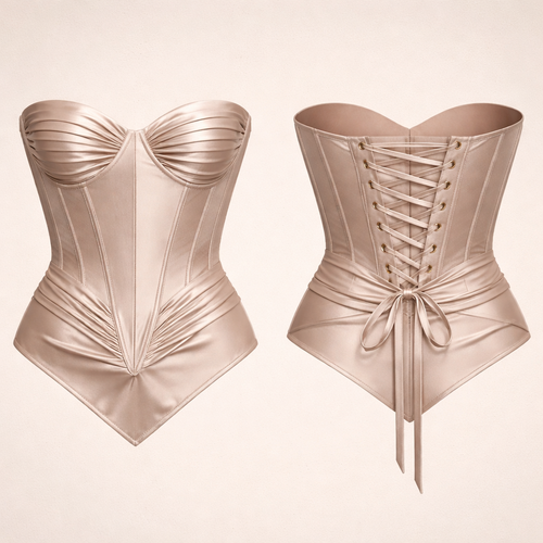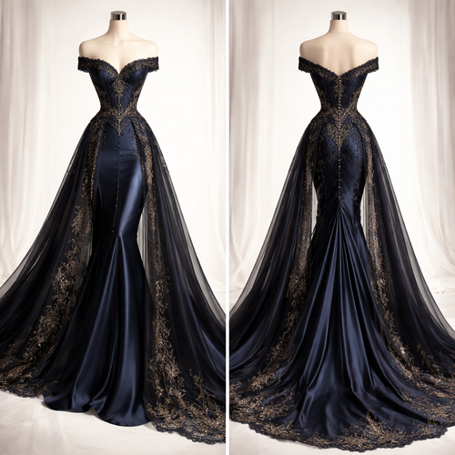 “Elegant couture evening gown with a fitted corset top and flowing A-line skirt. Inspired by modern Paris runway fashio...