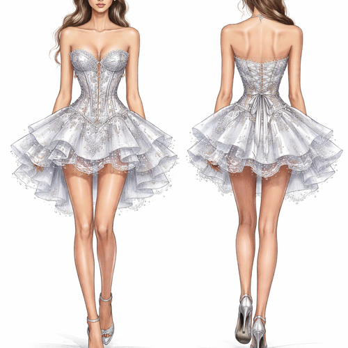 Short white formal dress with big puffy white jacket and white gloves and white heals angle wings