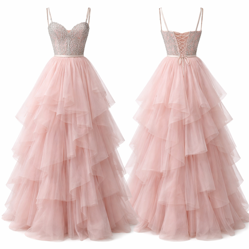A Disney prince aroara 12 year old girl with a school look a pink dress with puffy sleeves pink heals gold crown gold c...