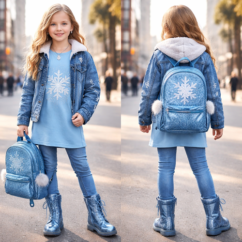 6th grade girls Disney princess elsa school look a blue long shirt with a white snowflake on it and a long blue shirt an...