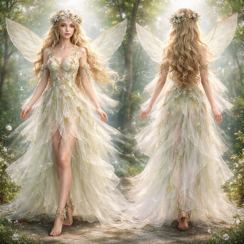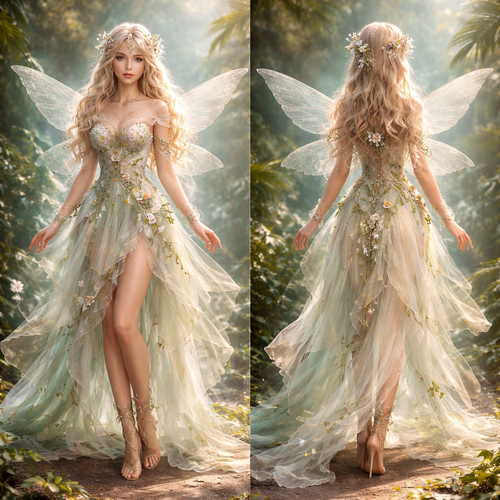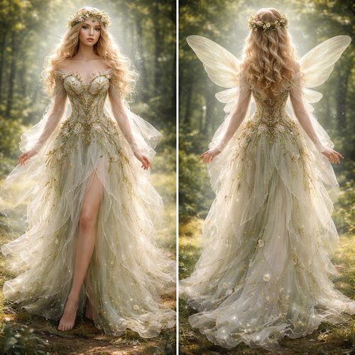 Her clothing is nature-inspired, light, and airy. Her costume most closely resembles that of a fairy: a dress made of de...