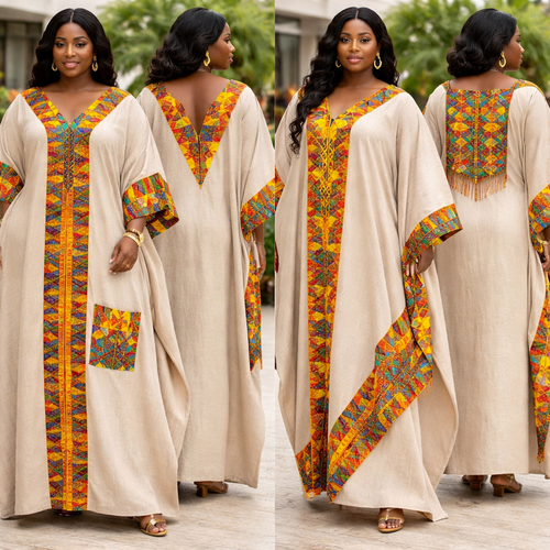 Plus size bubu gown collection with linen and kente