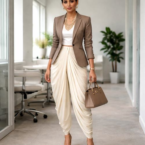 Business like - hindu dhoti for women with professional upper body match.