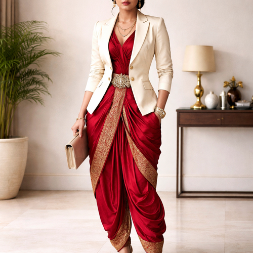 Stitched Dhoti and jacket top for women - add traditional flair