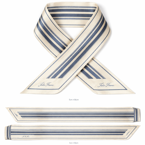 Design a 5cm x 86cm silk twill scarf for Jolie Franc, emphasizing refined British tailoring with understated feminine st...