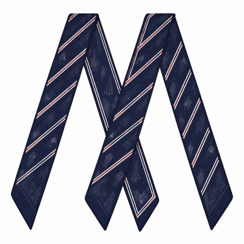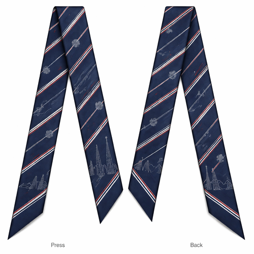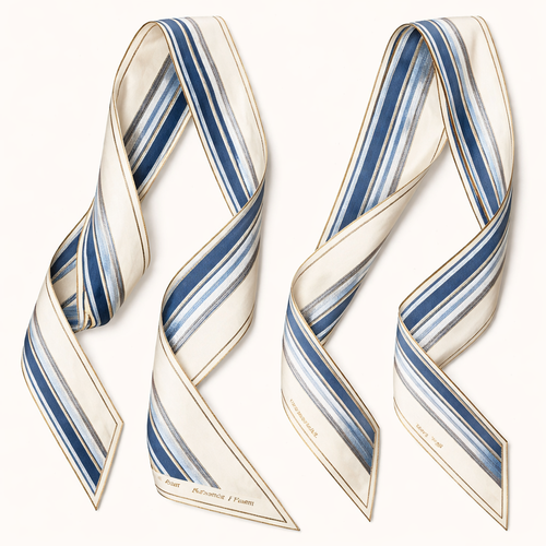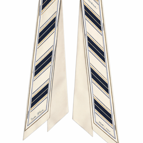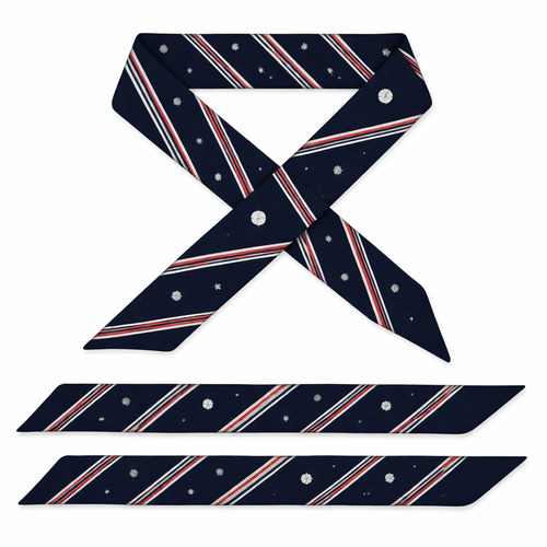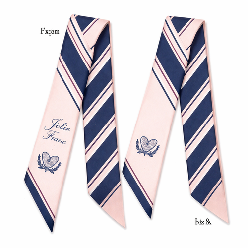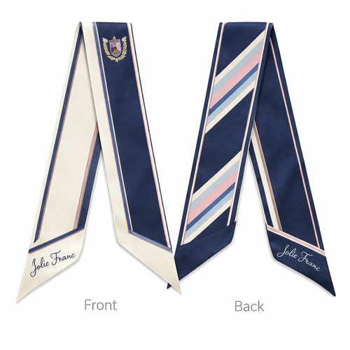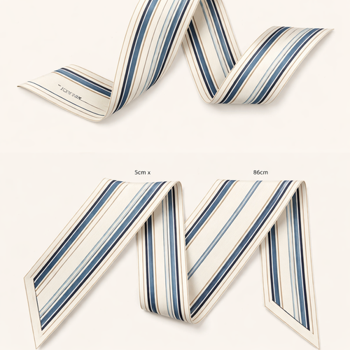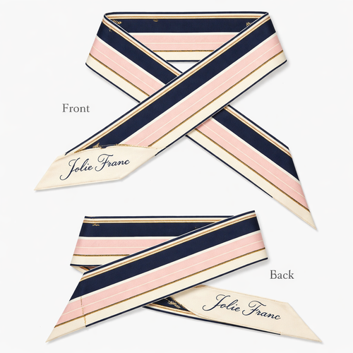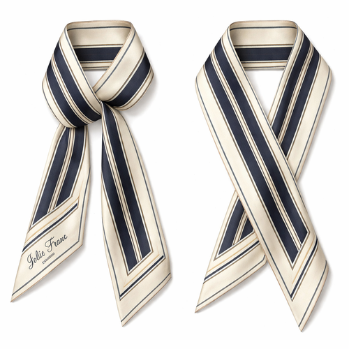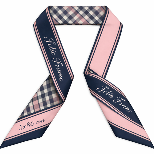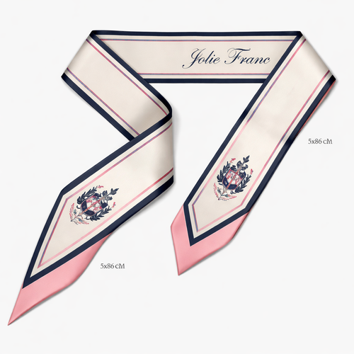 Design a 5cm x 86cm silk twill scarf for Jolie Franc, combining American preppy structure, British tailoring, and a femi...