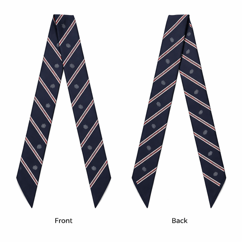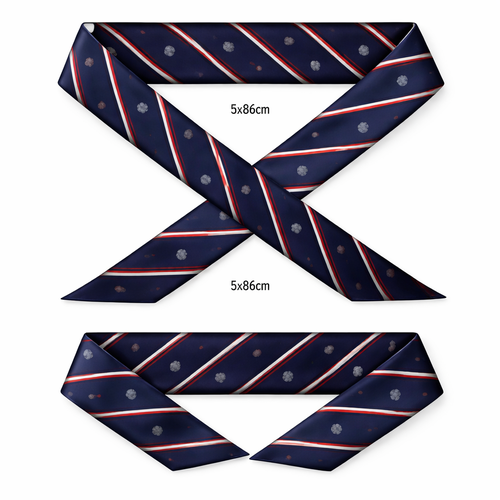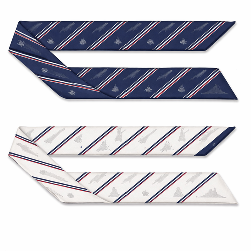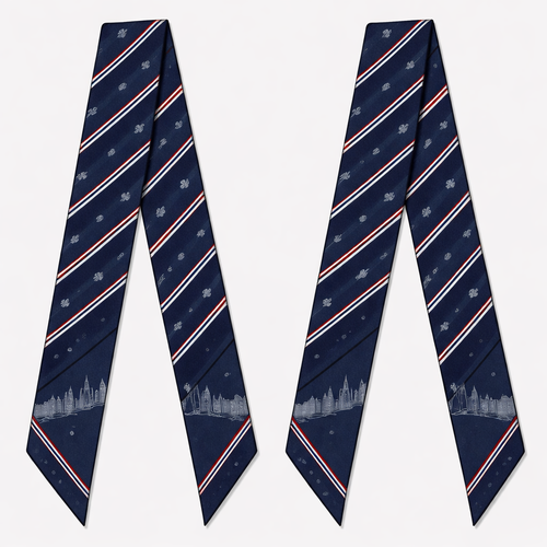 Design a 5cm x 86cm silk twill scarf for Jolie Franc, inspired by classic British tailoring with a subtle feminine refin...