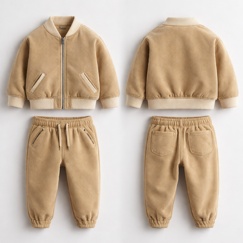 bomber jacket and trousers with couduroy fabric for kids something clean and simple