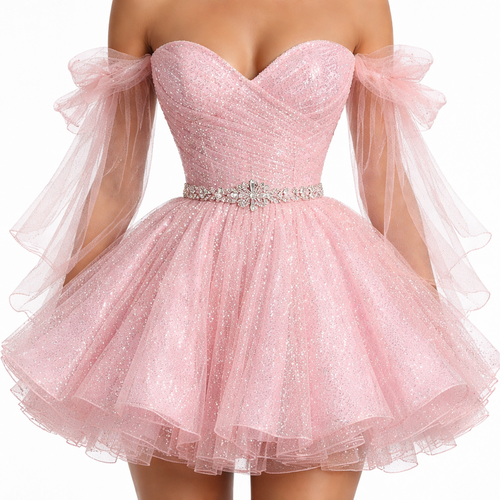 Butterfly dress, not the wings but in the dress, sparkly, elegant, slender, blue or brown.