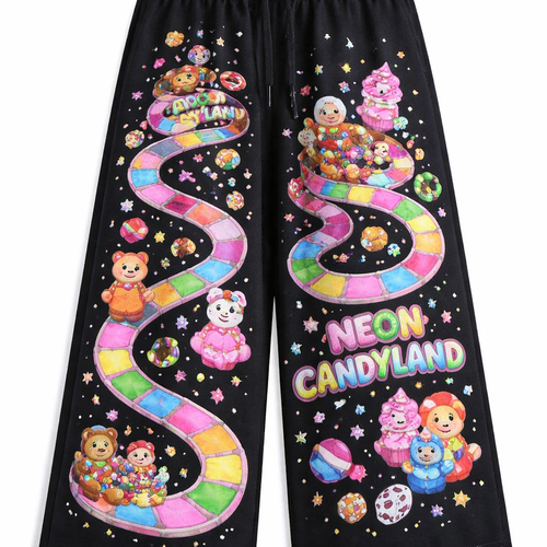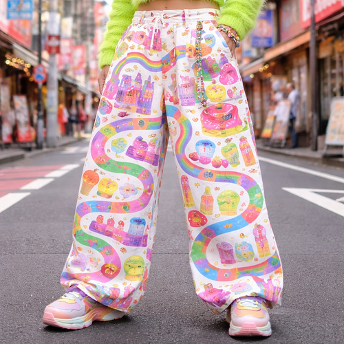 neon candy land board game themed pants