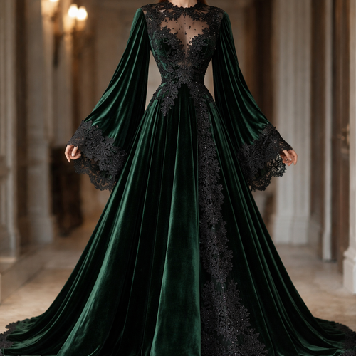 Придумай платье из бархата длина макси и рукава макси,силуэт трапеция ,с добавлением кружева