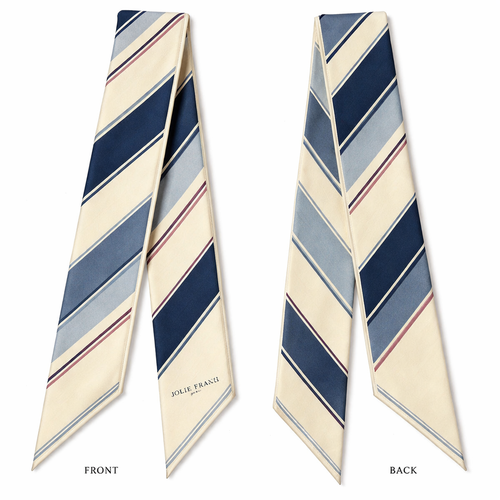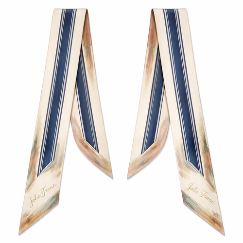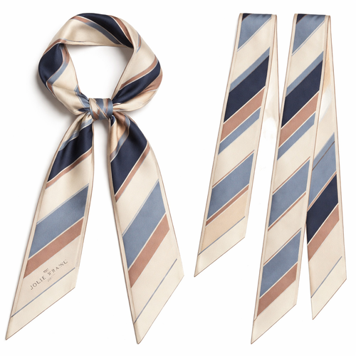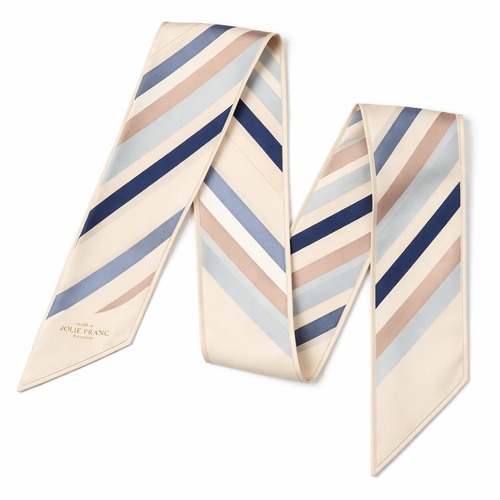 Design a 5cm x 86cm silk twill scarf for a luxury brand called Jolie Franc. The style blends American preppy tailoring, ...
