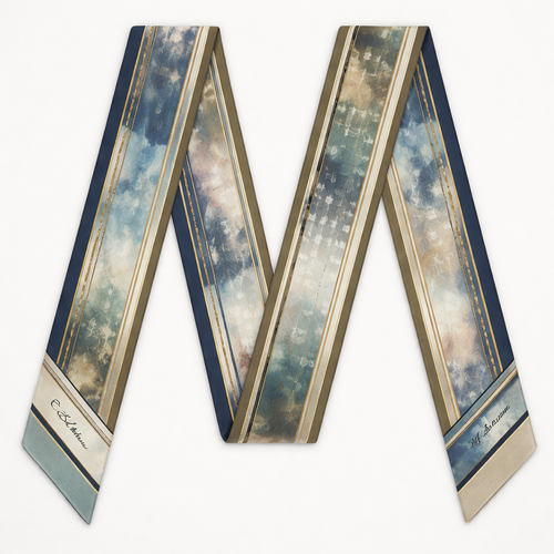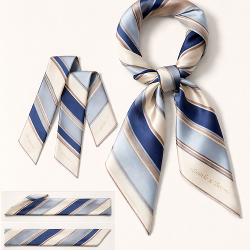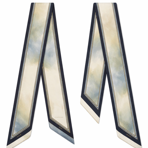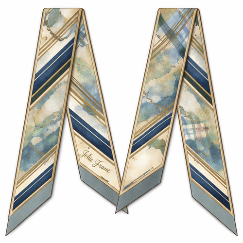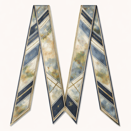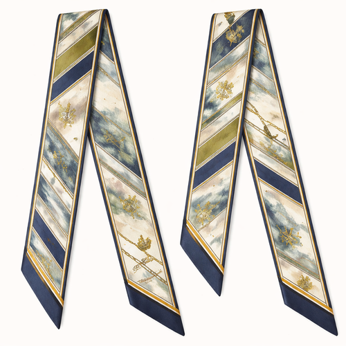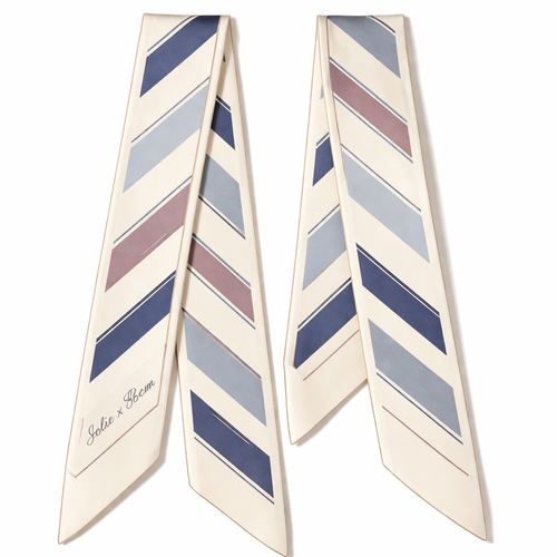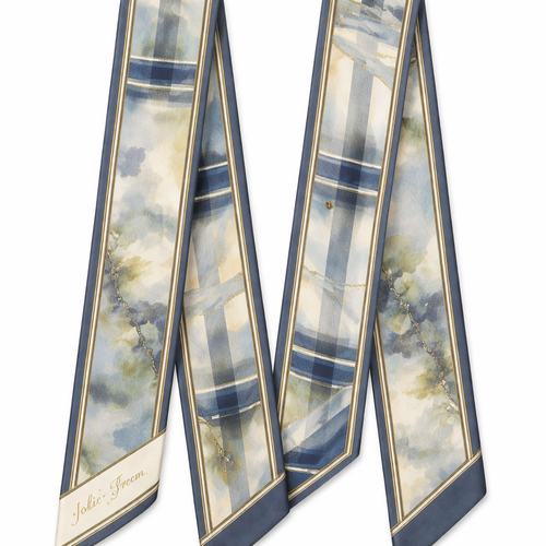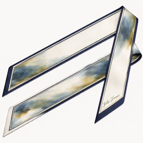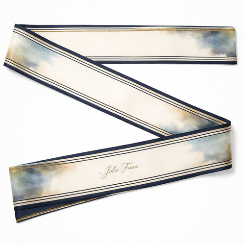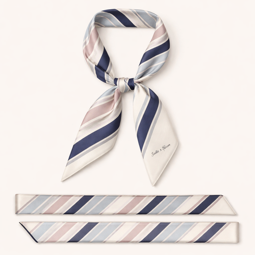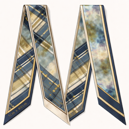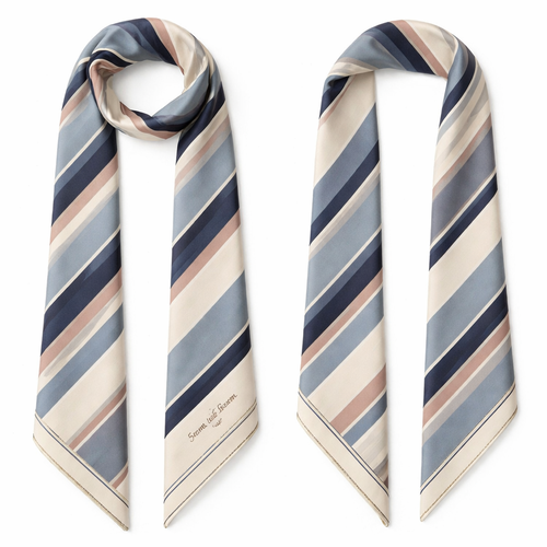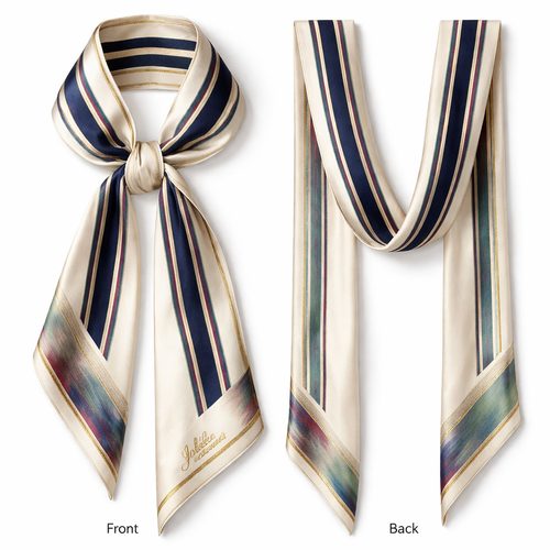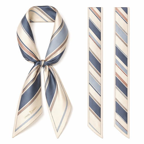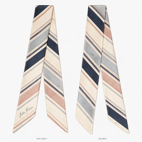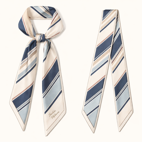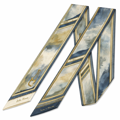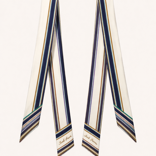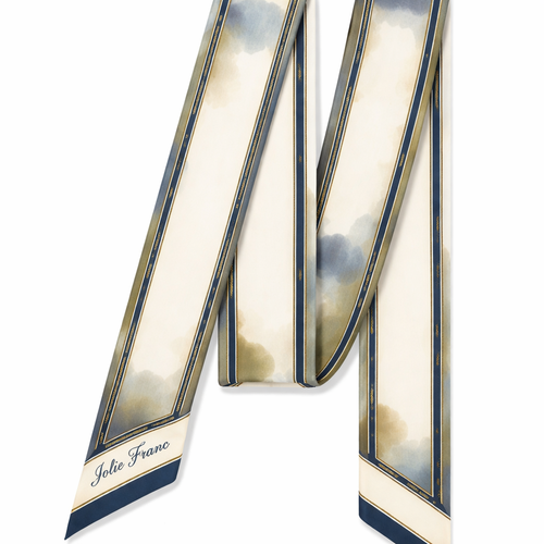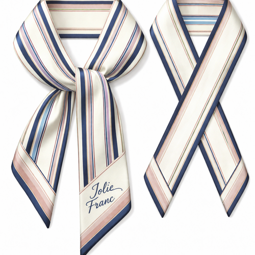 Design a 5cm x 86cm silk twill scarf for Jolie Franc, combining American preppy structure, British tailoring, and a femi...