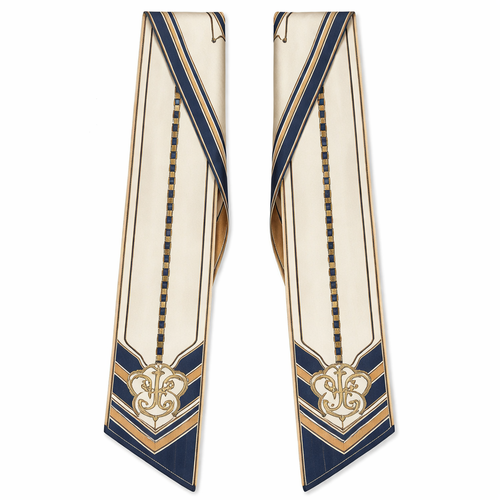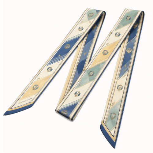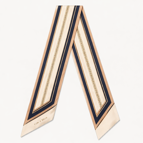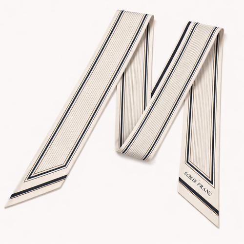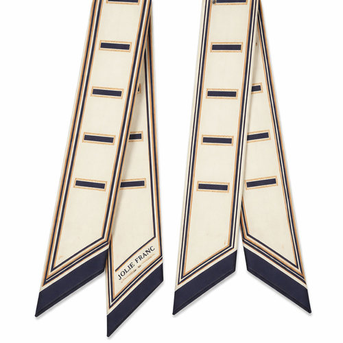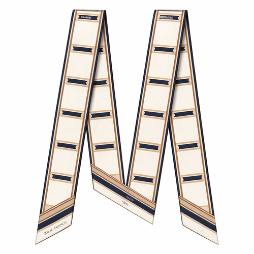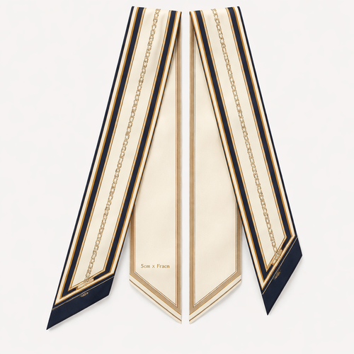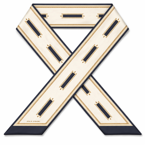 Design a 5cm x 86cm silk twill scarf for a luxury French brand called Jolie Franc. The design is classic, timeless, and ...