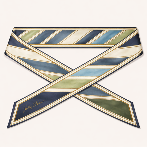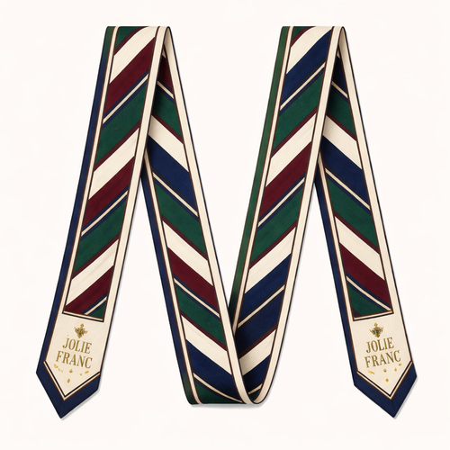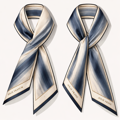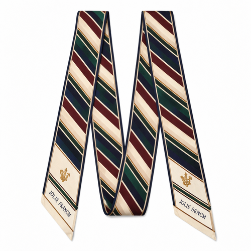 Design a 5cm x 86cm silk twill scarf for a luxury French brand called Jolie Franc. The style is classic, timeless, and t...