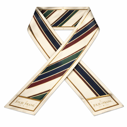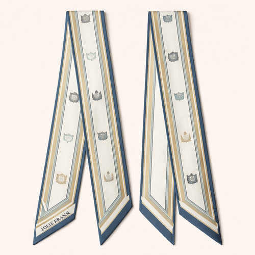 Design a 5cm x 86cm silk twill scarf for a luxury brand called Jolie Franc. The style combines American preppy structure...