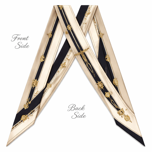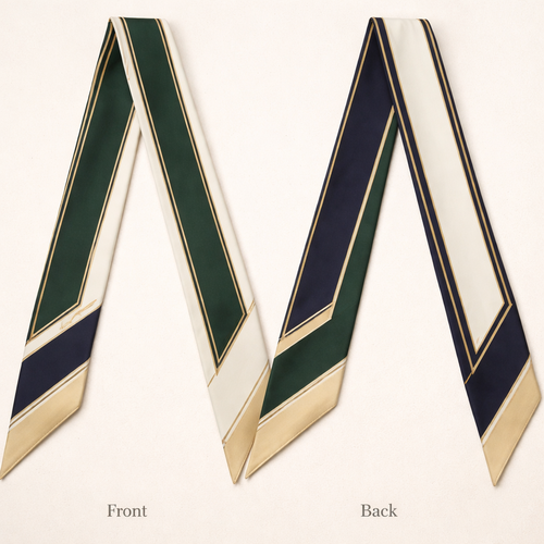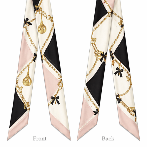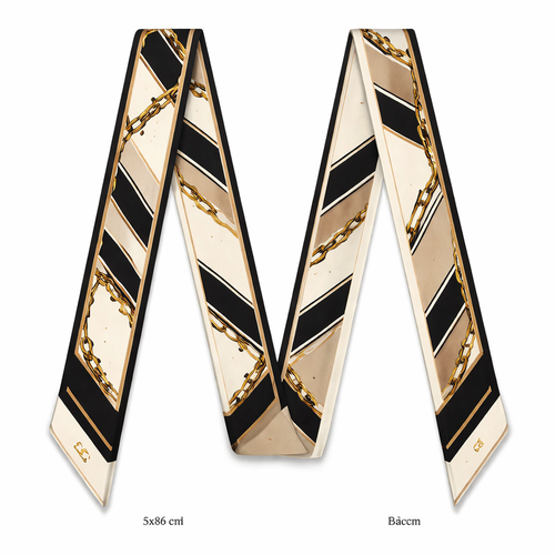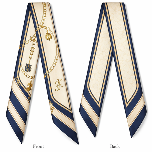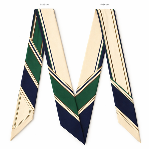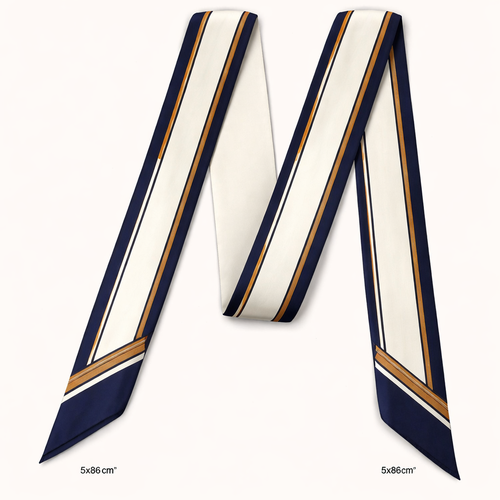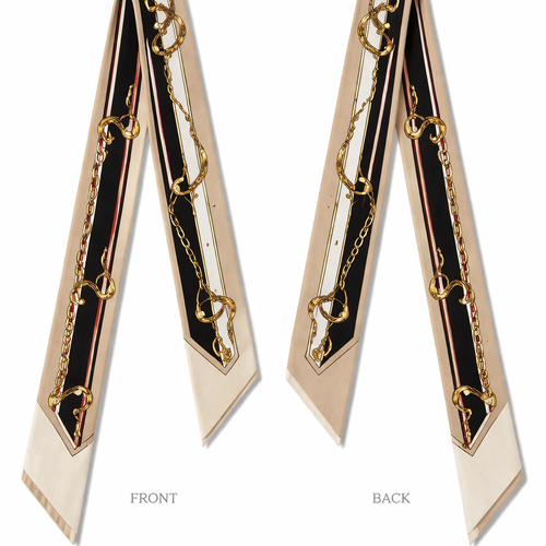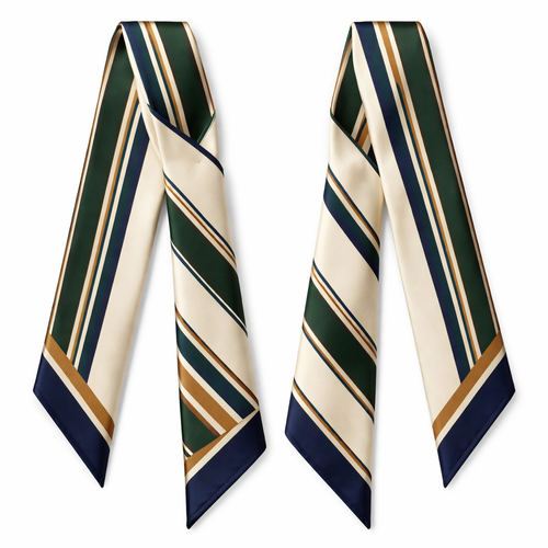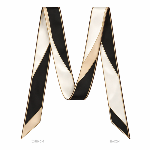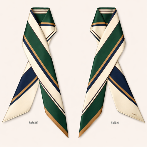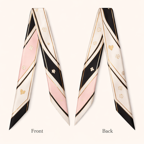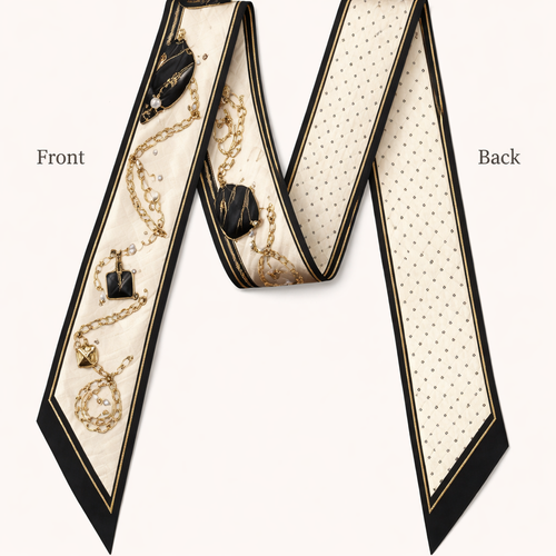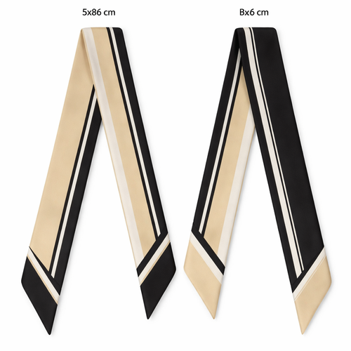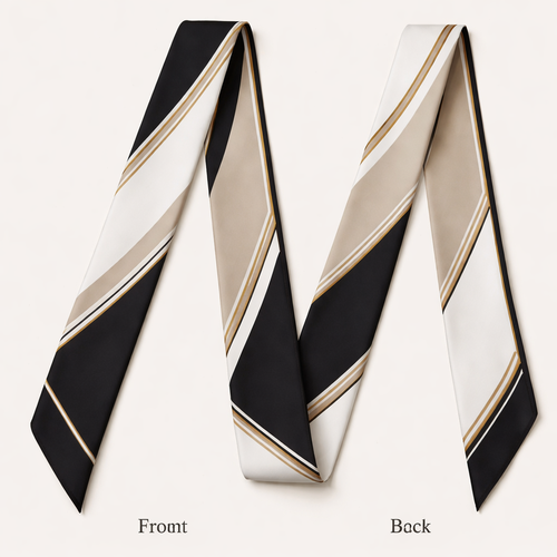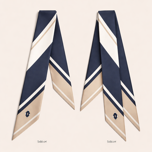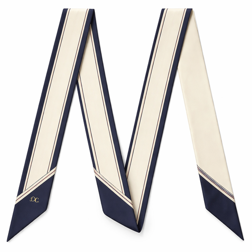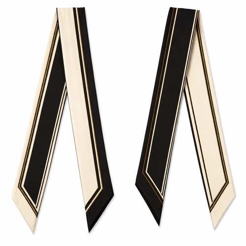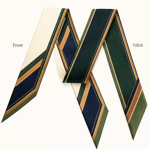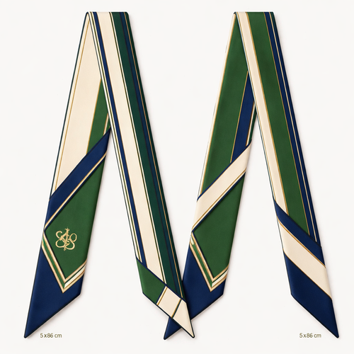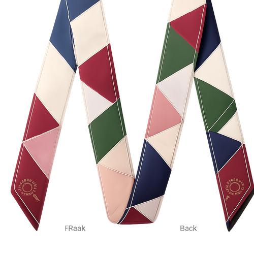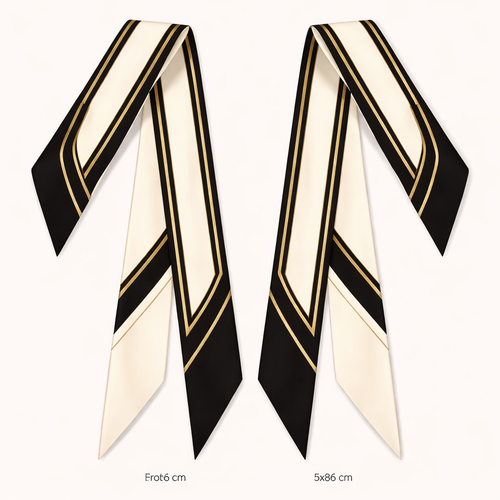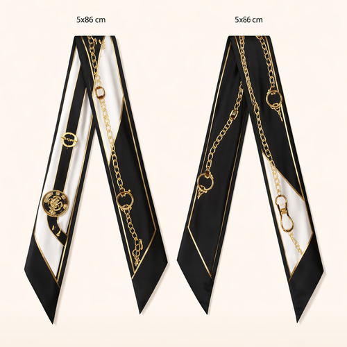 Design a silk twilly that is 5x 86 cm to be wrapped around the handle of a purse Make it iconic. Simple and tailored