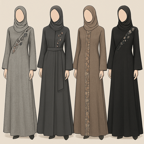 Create a modest two piece chic abaya , the first of its kind, featuring a unique stone design that exudes a classy and ...